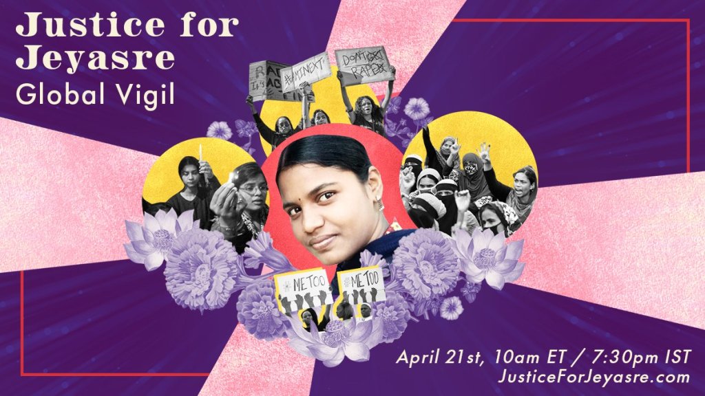 UPDATE: Thank you so much to everyone who participated in the day of action on 1st April. We are now supporting the global vigil for Jeyasre Kathiravel on 21st April. Please join us – https://justiceforjeyasre.com/